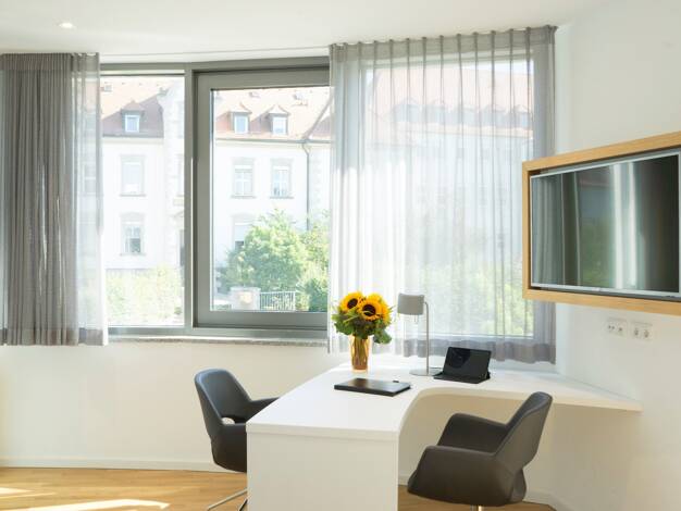 Miete 1200,00 inkl. Nebenkostenvorauszahlung für Heizung, Wasser und Strom, inkl. Internet, zzgl. GEZ Gebühr zur Selbstanmeldung. Modernes, gut geschnittenes Businessapartment im Zentrum von Erlangen...