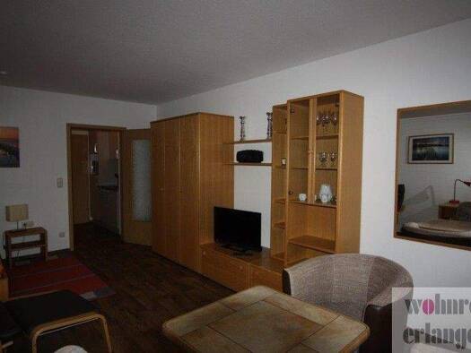 Gemütlich möbliertes 1-Zimmer-Apartment mit Balkon, WLAN und optionaler Tiefgarage in einem gepflegten Mehrfamilienhaus in Erlangen/ Bruck, nur 10 Fahrminuten ins Erlanger Zentrum. Im Wohn-Schlaf-Ber...