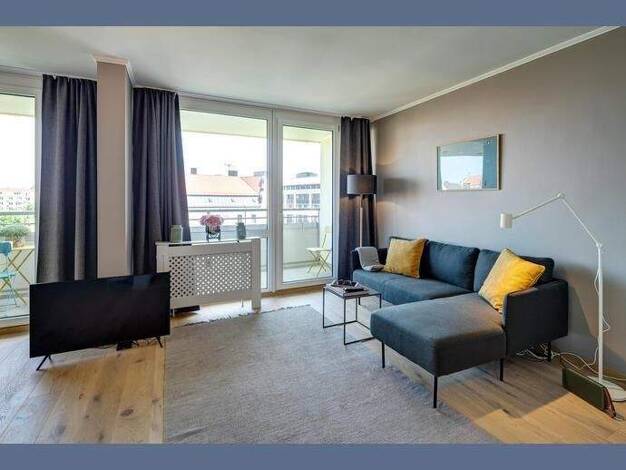 Möbliertes Wohnen auf Zeit: Charmante, neu renovierte und ruhige 2-Zimmer-Wohnung mit Sonnenterrasse im Vorgarten in München - Moosach Die Wohnung befindet sich im Erdgeschoss eines Einfamilienhauses...
