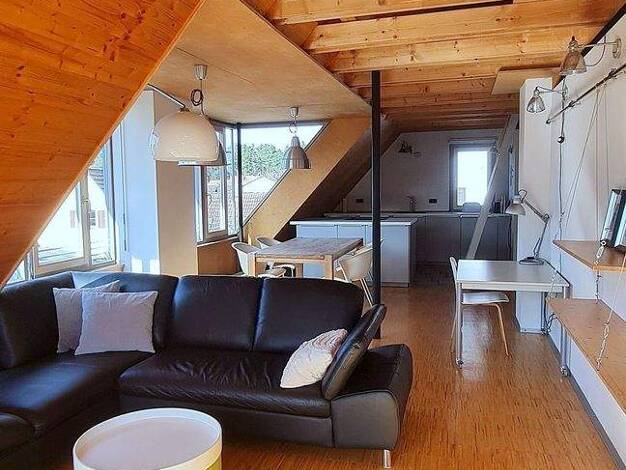 Die Wohnung Nr. 9 befindet sich im Dachgeschoss und überzeugt durch hohe Decken, die ein außergewöhnlich großzügiges Raumgefühl schaffen. Der durchdachte 1,5-Zimmer-Grundriss eignet sich ideal für berufstätige Einzelpersonen oder Paare mit kurz- bis mittelfristigem Wohnbedarf. Der offen gestaltete Wohn- und Essbereich bildet das Herzstück der Wohnung und bietet direkten Zugang zur großen Loggia – ein perfekter Ort für entspannte Abende oder einen ruhigen Start in den Tag. Der separate Schlafber...