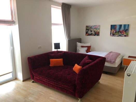 Luxuriös ausgestattet, verfügt dieses komfortable 1-Zimmer- Großraum-Apartment über eine komplette Hotelzimmermöblierung in sehr hochwertiger Ausführung. Wohn- und Schlafbereich sind visuell voneinan...