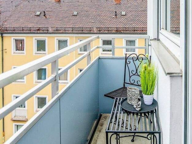 Schönes und gemütlich möbliertes 1-Zimmer-Apartment mit WLAN und Balkon u im beliebten Stadtteil St.-Johannis in Nürnberg. Die Möblierung des Zimmers besteht aus einem Einzelbett (1,20x2,00 m), Nacht...