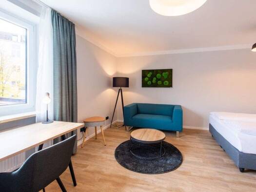 Diese stilvoll und modern möblierte Wohnung überzeugt durch eine durchdachte Raumaufteilung und eine angenehme Wohnatmosphäre. Das helle Wohnzimmer ist mit einem komfortablen Sofa ausgestattet und ve...