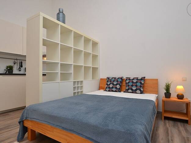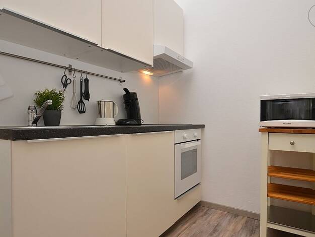 Modern möbliertes 1-Zimmerapartment in Ochsenfurt mit Balkon Die ca. 28m² große Wohnung, welche mit Laminatboden ausgelegt ist, befindet sich im 1. Obergeschoss eines Neubaus. Die Einbauküche, welche in den Wohnraum integriert ist, ist mit zwei Herdplatten, Backofen, Mikrowelle, Wasserkocher, Kaffeemaschine, Kühlschrank mit Gefrierfach und sämtlichen Küchenutensilien ausgestattet. Der Wohn- und Schafbereich ist mit einem 1,40m breiten Bett, Nachttisch, Regal als Raumtrenner zum Kochbereich, Ses...