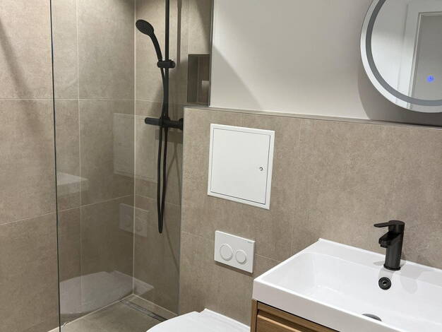 Die Wohnung bietet 2 vollwertige Schlafzimmer, beide mit Bett, Kleiderschrank und Schreibtisch. Separate Küche mit Spülmaschine und verschiedenen Küchenutensilien. Badezimmer mit Badewanne. Waschmaschine in der Wohnung.