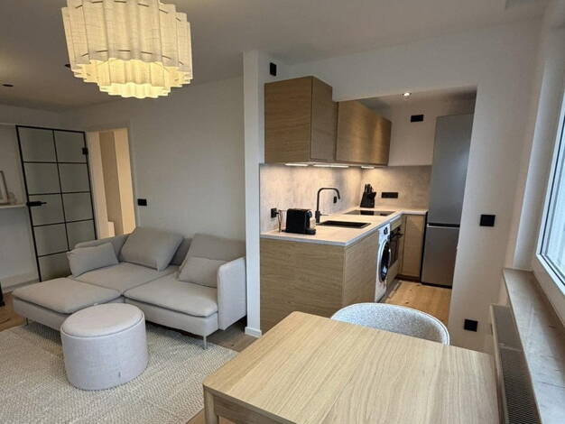 Schön geschnitten mit 2 Schlafzimmern, Wohnzimmer, Küche im Gang und Badezimmer. Die Schlafzimmer sind jeweils mit Bett (1x Doppelbett, 1x Einzelbett) und Kleiderschrank möbliert. Beide bieten praktischen Stauraum mit Beleuchtung. Wohnzimmer mit großem Fenster, Ledersofa und Essbereich. Die Küche ist perfekt ausgestattet mit allem, was man täglich benötigt. Badezimmer mit Dusche und Waschmaschine. Internet ist in der Miete enthalten. Miete zzgl. 350 € Nebenkosten.