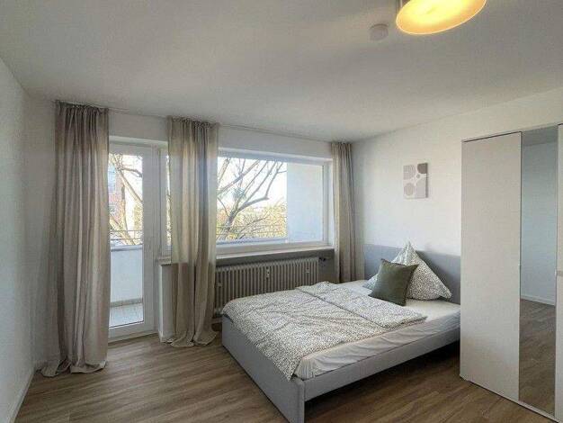 Gemütlich möblierte 3-Zimmer-Wohnung mit Balkon in Feldmoching. Die lichtdurchflutete Wohnung wurde 2020 teilrenoviert und ist in einem guten Zustand. Das Wohnzimmer bietet Sofa, Lounge-Chair und Ess...