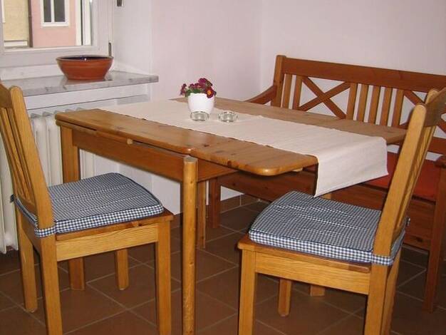 Wohnzimmer mit Schlafsofa, Flatscreen-TV, Sat-TV, Stereoanlage, DVD-Player und Esstisch für 4 Personen. Schlafzimmer mit Doppelbett (160 x 200 cm) und Arbeitsbereich mit Schreibtisch. Küchenzeile mit...