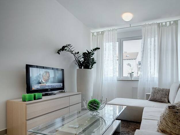 Diese praktisch möblierte 3-Zimmer-Wohnung bietet eine durchdachte Raumaufteilung. Das Wohnzimmer ist mit einem Sofa und einem TV ausgestattet. Im Schlafzimmer befinden sich ein Doppelbett sowie ein ...