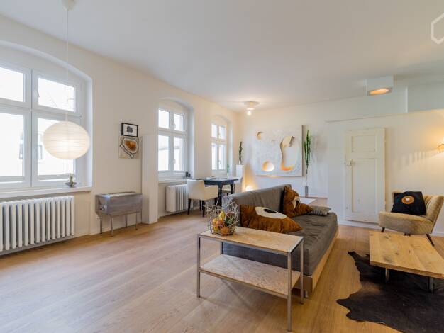 "This freshly renovated and high-quality furnished 3-room apartment in Berlin Köpenick offers a radiant, modern interior and high-quality furnishings for a particularly cozy living experience. The ap...