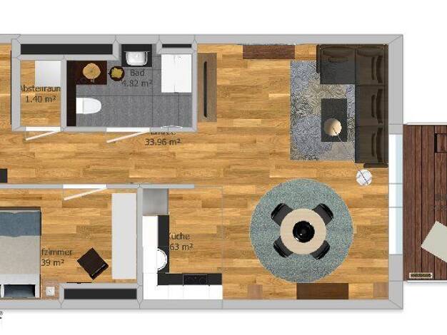 Die helle und modern ausgestattete Wohnung im 1. Obergeschoss wurde 2025 vollständig renoviert und bietet ideale Bedingungen für ein angenehmes WG-Leben. Alle drei Zimmer sind voll möbliert, lichtdur...