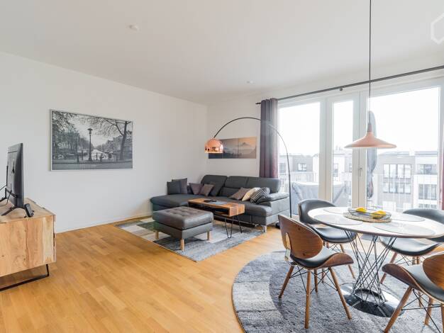 "This freshly renovated and high-quality furnished 3-room apartment in Berlin Köpenick offers a radiant, modern interior and high-quality furnishings for a particularly cozy living experience. The ap...