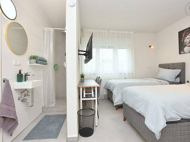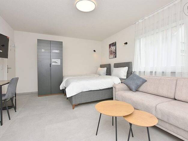 Großzügige, schön möblierte 1-Zimmer Einliegerwohnung mit separatem Eingang, Freisitz, PKW-Stellplatz, monatlichem Reinigungsservice und Internet in zentraler, aber ruhiger Lage in einem 2-Familienha...