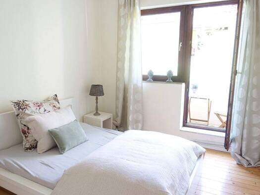 This apartment is just refurbished. Stunning and very bright attic flat. 1 bedroom / livingroom, sep. kitchen, new shower, sitting area in the garden. wooden floor approximately 35qm