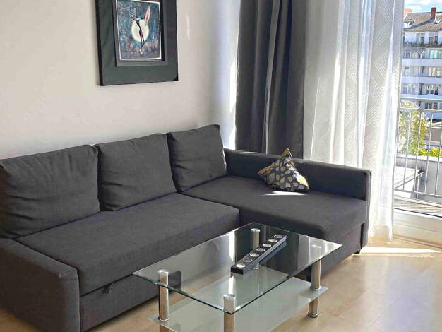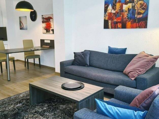 Weitere Informationen, viele hochauflösende Fotos und ein Video zu diesem Objekt finden Sie unter: https://www.mrlodge.de/wohnungen/detailansicht/13523/ See offer in English: https://www.mrlodge.com/search/detailed-view/13523/ Zimmer: Kombiniertes Wohn-/Schlafzimmer:, Doppelbett 180 x 200 cm, Sofa, Esstisch mit 4 Stühlen, Kleiderschrank, Bad mit Dusche Möblierung: neuwertig, exklusiv Küche: Einbauküche, Kühl-/ Gefrierkombination, Spülmaschine, Cerankochfeld, elektrischer Backofen, Dunstabzug, E...