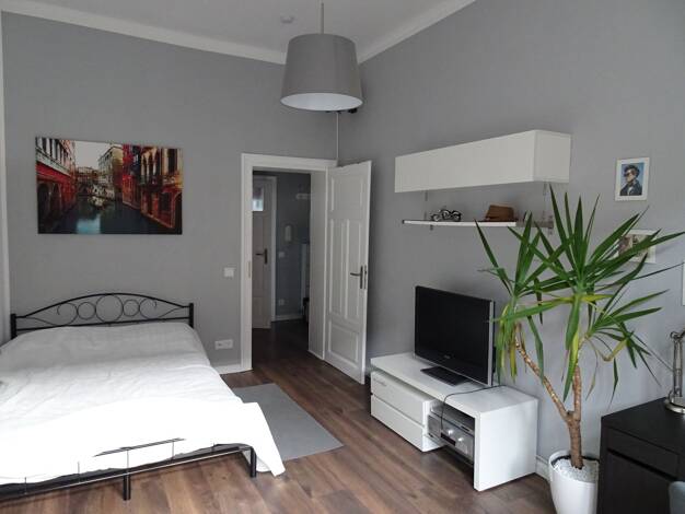 Neu möbliertes 1-Zimmer Apartment in Dresden-Pieschen. Wohn- und Schlafraum mit 2 vollwertigen Einzelbetten. Sehr gute Anbindung zum öffentlichen Nahverkehr (Straßenbahn Linie 4,9,13 um die Ecke, S-Bahn 4 Minuten zu Fuß), Lidl 10 Minuten zu Fuß, die Mälzerei, Elbepark und Autobahn 8 Minuten mit dem Auto. Pauschalmiete für dieses 1-Zimmer Apartment inkl. aller Nebenkosten*, Möblierung und Kücheneinrichtung, Waschmaschine, Internet und Strom: ab 3-5 Monate: 950,-€ / Person ab 6 Monate: 900,-€ / P...