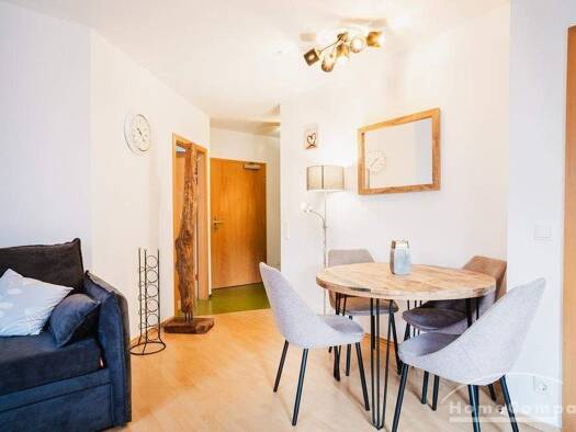 Virtual tour: https://youtu.be/2jCNLeehxDM + Hochwertige Ausstattung wie z. B. eine Echtledercouch mit Schlaffunktion sowie eine Echtledereckbank mit Stühlen an der Küche. + Im Schlafzimmer befindet sich zusätzlich eine Wickelkommode. + Das Bad wurde neu gefliest und verfügt über eine große Duschkabine und eine Waschmaschine. + WLAN und TV vorhanden. Miete inkl. aller Nebenkosten, Strom und Internet/W-LAN: ab 3-6 Monate: 1.400,-€ / 2 Personen ab 7 Monate: 1.300,-€ / 2 Personen ab 12 Monate: 1.2...