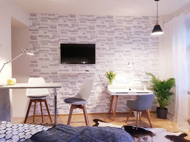 Miete für dieses 1-Zimmer Apartment inkl. Nebenkosten, Möblierung und Kücheneinrichtung, Waschmaschine, Internet, Strom, Unterhaltsreinigung*: ab 5 Monate: 1.000,-€ / monatlich / 2 Personen ab 3-4 Mo...