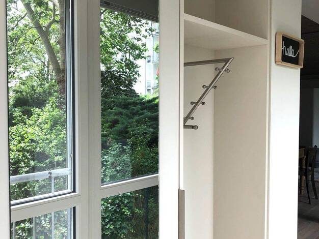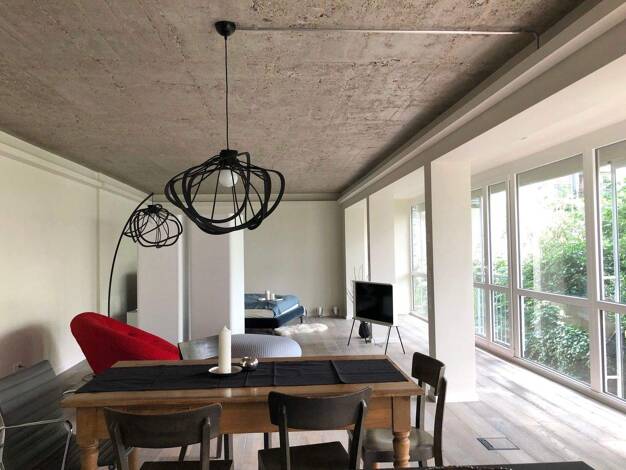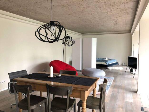 Carlstadt: Rarität in Bestlage in einer der idyllischsten Straßen Düsseldorfs! Stilvolle Traumwohnung mit altbautypisch hohen Decken, in einem wunderschönen und äußerst gepflegten Haus mit edler, hochwertiger Ausstattung im provenceialischem Stil mit viel Liebe zum Detail. Wohnraum: Ledersofa, zwei Barcelona Ledersessel, historischer Schubladenschrank, historischer Marmorkamin mit Spiegelaufsatz (Deko), ausziehbarer Esstisch mit 6 Stühlen, zwei Armlehnsesseln in der Bibliotheksecke. Musikanlage...