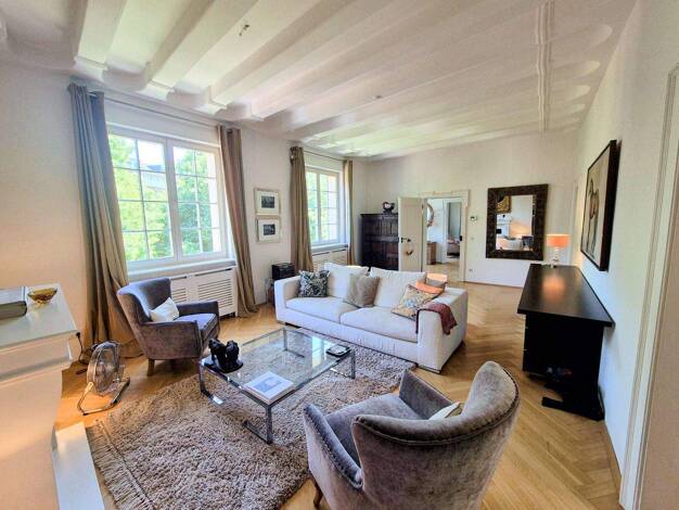 5-Zimmer-Wohnung in Pempelfort in prachtvollem Altbau: Die sehr geschmackvoll und mit hochwertigen Möbeln eingerichtete Wohnung befindet sich im 3. und 4.OG eines repräsentativen und aufwendig sanier...