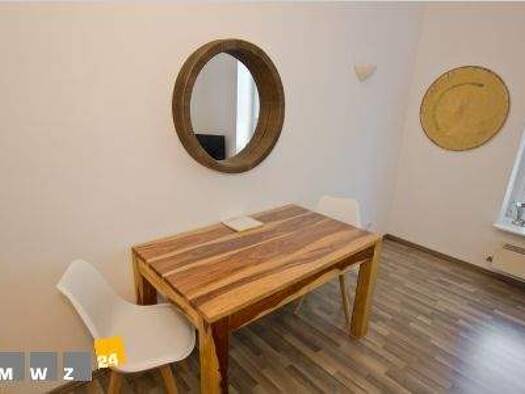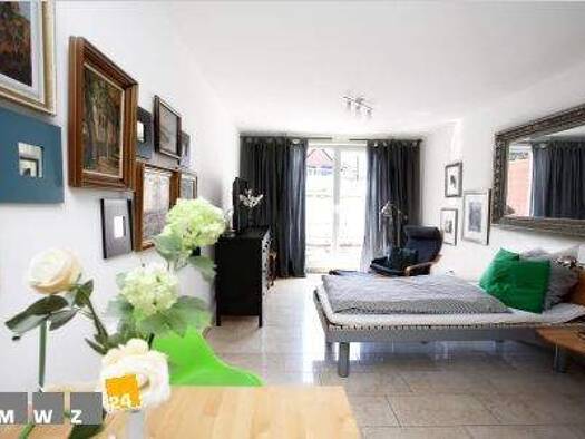 Helle und vollständig eingerichtete 1-Zimmer-Wohnung in einem gepflegten Haus. Der gut geschnittene Grundriss bietet Platz für Bett, breite Couch und Esstisch. Eine praktische Kochnische ist integrie...