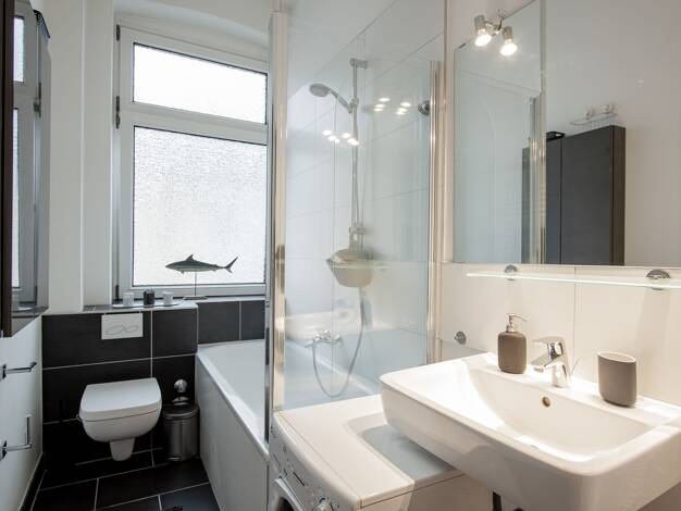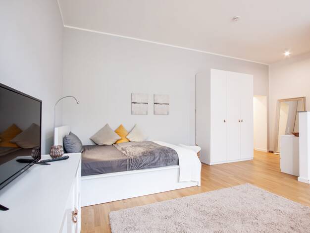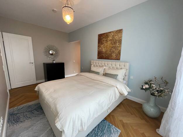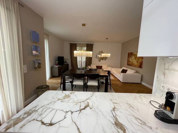 Carlstadt: Rarität in Bestlage in einer der idyllischsten Straßen Düsseldorfs! Stilvolle Traumwohnung mit altbautypisch hohen Decken, in einem wunderschönen und äußerst gepflegten Haus mit edler, hochwertiger Ausstattung im provenceialischem Stil mit viel Liebe zum Detail. Wohnraum: Ledersofa, zwei Barcelona Ledersessel, historischer Schubladenschrank, historischer Marmorkamin mit Spiegelaufsatz (Deko), ausziehbarer Esstisch mit 6 Stühlen, zwei Armlehnsesseln in der Bibliotheksecke. Musikanlage...