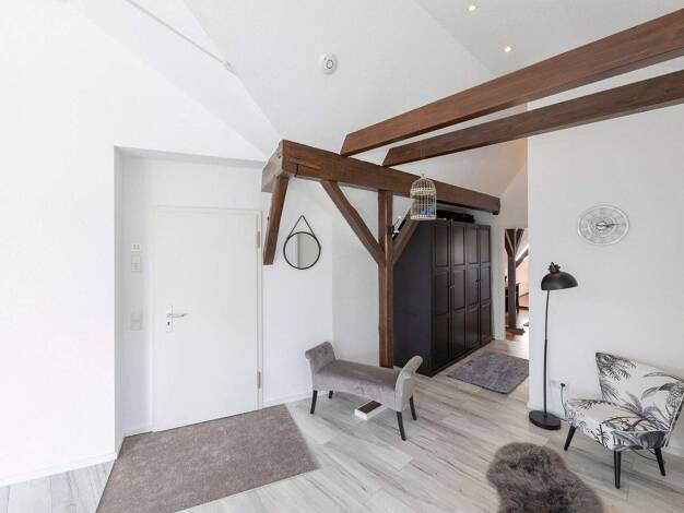 Hotelalternatives Wohnen in sehr gepflegtem Haus mit eindrucksvollem Hausflur. Der kleine Garten hinter dem Haus kann genutzt werden. Hier ist entspanntes Wohnen möglich, da die Wohnung komplett zur ...