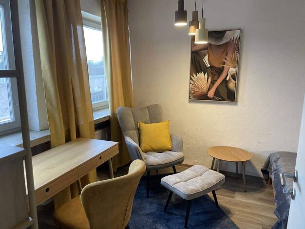 Direkt an den Unikliniken und der Universität: Schön möbliertes 1-Zimmer-Apartment mit WLAN direkt im Zentrum von Erlangen. Die Möblierung des Zimmers besteht aus einer 2-Sitzer Couch, Couchtisch, Fl...