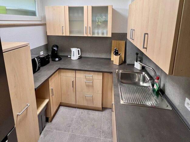 Empfehlenswert: Geschmackvoll möblierte 2-Zimmer-Wohnung mit Terrasse und WLAN in einem Zweifamilienhaus in Baiersdorf, ideal zwischen Erlangen und Forchheim gelegen. Die Möblierung des Wohnzimmers b...