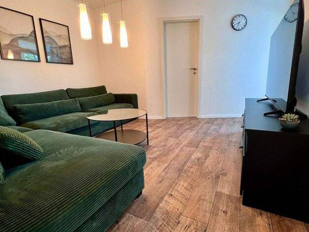 Ideal zum Siemens Campus: Modern möblierte 2,5-Zimmer-Wohnung mit WLAN (100er Leitung) und Balkon in einem gepflegten und ruhig gelegenen Reihenhaus in Erlangen Bruck. Die Möblierung des Wohnzimmers ...