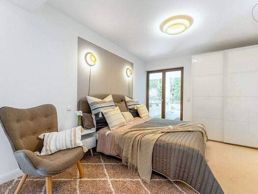 Exklusiv möblierte 3,5-Zimmer-Wohnung mit WLAN, Terrasse, Gartenanteil und Stellplatz nahe der Unikliniken in Erlangen. Die Möblierung des Wohnbereichs besteht aus einer Eckcouch, Couchtisch, Sessel,...