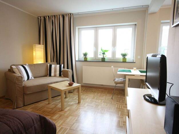 Wohnung Nr. 42 Ohne Kaution, mit einer Mindestmietzeit von nur zwei Tagen (60.- € pro Tag + MwSt + Reinigung 80.- € ) und jederzeit kündbar. Diese voll ausgestattete Wohnung bietet alles, was Sie für...