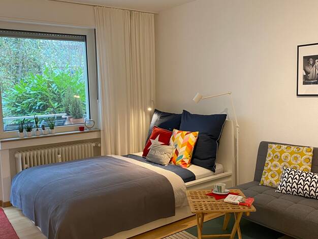 Diese frisch renovierte und modern gestaltete Erdgeschosswohnung erfüllt alle Ansprüche an " gehobenes Wohnen auf Zeit ". Die hellen Wände, die großen Fenster, der Balkon zur Gartenseite, die Hochgla...