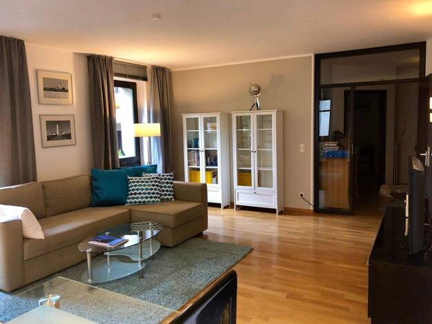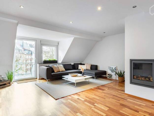 Essen-Rüttenscheid: Sehr schicke, geräumige und helle Wohnung in wunderschöner Jugendstilvilla (Raumhöhen bis 3,5m) . Komfortabel und modern möbliert: Wohnzimmer mit bequemer Sitzecke, zusätzliche Sc...