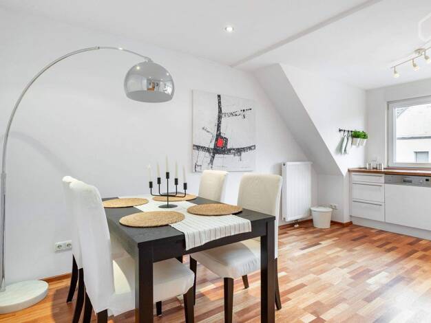 Geschmackvoll ausgestattete, voll möblierte Wohnung in der Essener Innenstadt. Optimaler Grundriss für 2 Einzelpersonen oder Familie. Große, helle Wohnküche mit Esstisch für 4 Personen und löffelfert...