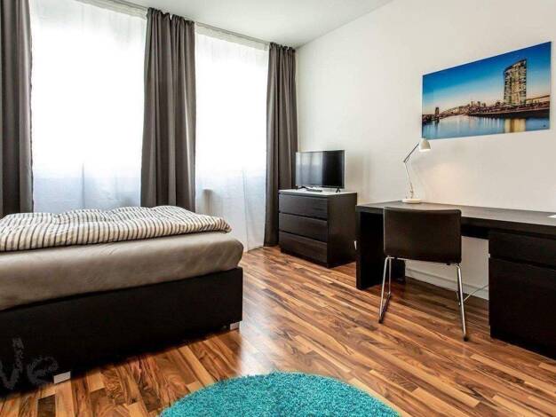 Jedes der Zimmer ist komlett möbliert und verfügt über ein Bett inkl. Bettzeug und Bettwäsche, Kleiderschrank, Schreibtisch mit Stuhl, eigener WLAN Router und Fernseher. Die Zimmer alle geräumig und ...