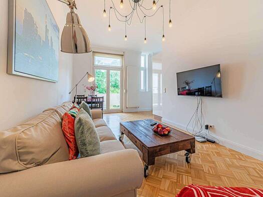 Die hochwertig eingerichtete Wohnung liegt in einem Einfamilienhaus in einer ruhigen Sackgasse in der Nähe eines Parks. Ausstattung Wohnen: hell und gemütlich Küche: integrierte Einbauküche kompl. au...