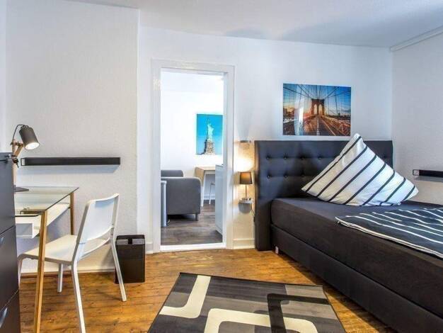 Objektbeschreibung Nur noch Koffer auspacken und sich zu Hause fühlen! Dieses stilvoll eingerichtete 1-Zimmer-Apartment bietet alles, was Sie für ein komfortables Leben in Frankfurt benötigen. Ideal ...