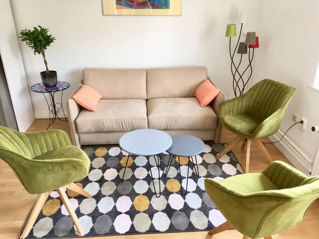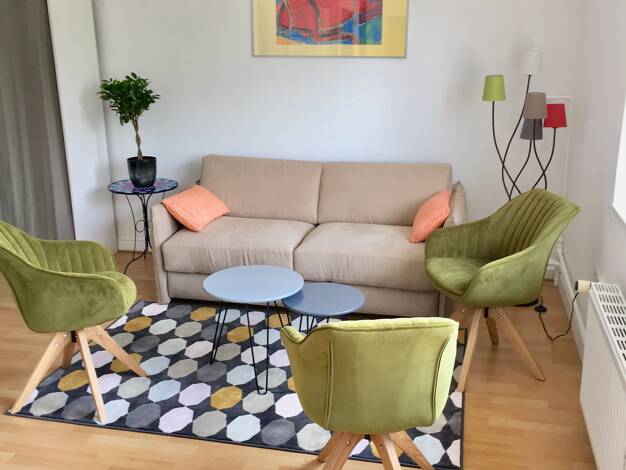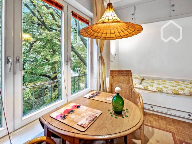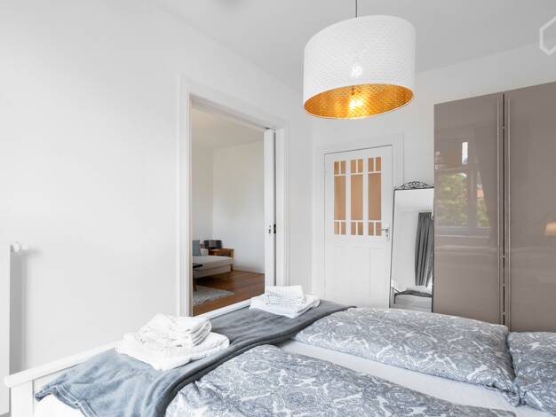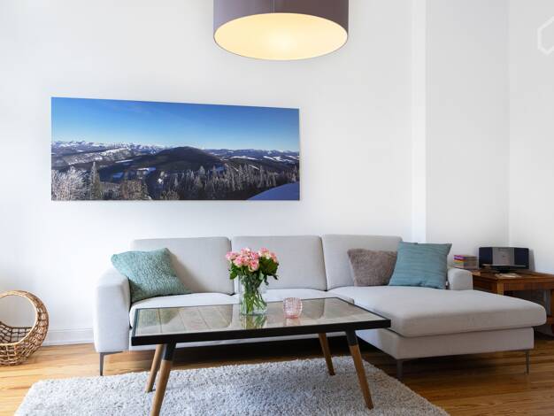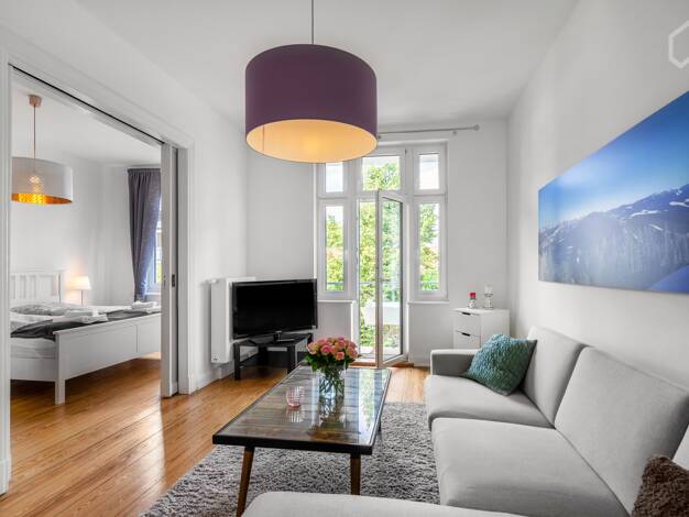 Die möblierte Wohnung befindet sich in einer wunderschönen Altbauzeile, im 1. Obergeschoss. Ein einladender, großzügiger Eingangsbereich empfängt Sie und Ihre Gäste, von dem aus Sie in fast alle Räum...
