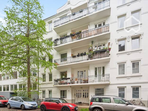 Charmante, helle und sehr ruhig gelegene 2,5 Zimmerwohnung im Hochparterre mit großem sonnigen Südbalkon im Herzen von Hamburg Eppendorf mit Fahradkeller und kleinem Spielplatz im Innenhof des Grundstücks.