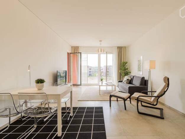 "This freshly renovated and high-quality furnished 3-room apartment in Berlin Köpenick offers a radiant, modern interior and high-quality furnishings for a particularly cozy living experience. The ap...