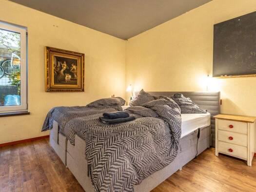 Diese kleine, aber feine Wohnung befindet sich in einem Anbau eines Mehrfamilienhauses in ruhiger, aber zentraler Lage in Groß-Gerau. Alle Geschäfte des täglichen Bedarfs sowie die öffentlichen Verkehrsmittel befinden sich im unmittelbaren Umkreis. Die Lage bietet eine schnelle und optimale Anbindung zur Autobahn A67. Der Wohn- und Schlafraum ist mit zwei Einzelbetten (90 x 200 cm), welche ein großes Doppelbett bilden, einem Sofa, einem Sideboard mit Flatscreen-TV, einer Kommode, einem Schreibt...