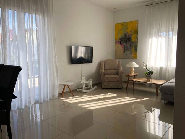 Vollmöblierte und gehoben ausgestattet WohnungWohnzimmerGroßes Wohnzimmer mit gemütlichem Kamin und dimmbarem Licht, Sofa von Ligne Roset, Gira Audiotainment, Samsung-TVSchlafzimmerkomfortables, exkl...