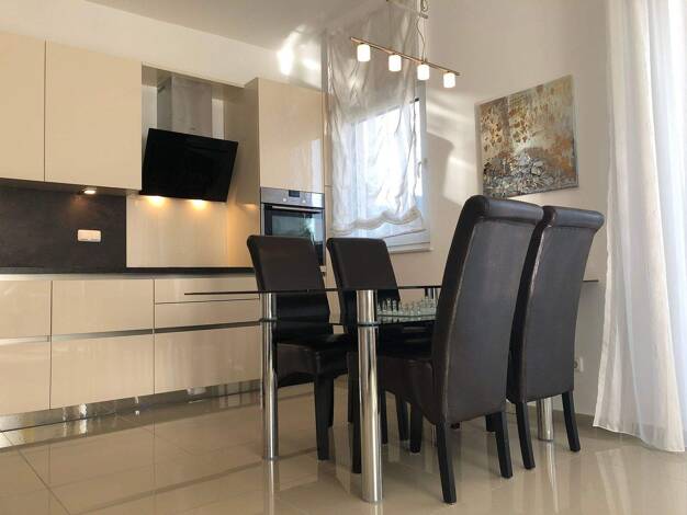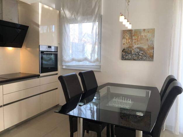 4 Zimmer Wohnung mit exklusiver Ausstattung.Wohnen: modern möbliert, großes Eckledersofa, Kamin und Zugang zum GartenDer Essbereich befindet sich ebenfalls im großen Wohnbereich, mit Platz für 6 Pers...