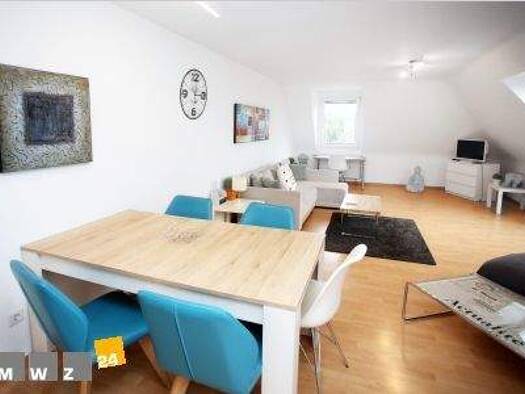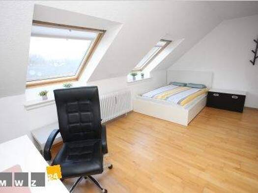 Fully furnished accommodation in Lörick. Light-filled attic apartment with unobstructed views of nature. Large living room/bedroom with an open-plan fitted kitchen, parquet flooring and terracotta ti...