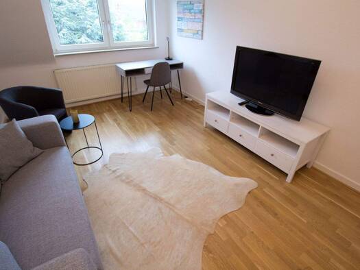 Fully furnished accommodation in Oberkassel. Large top floor flat in a well-maintained apartment building in the popular Oberkassel district. Spacious living/dining area with large sofa, flat-screen ...