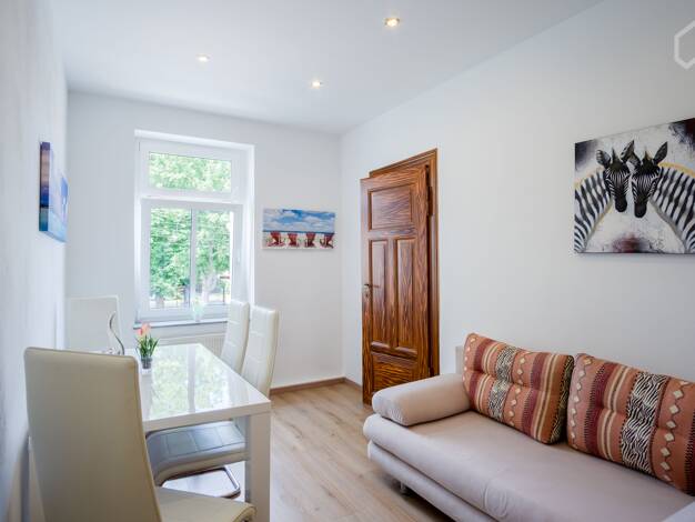 Das möblierte Apartment (26m²) befindet sich in Leipzig-Wahren. Wahren ist einer der ältesten und grünsten Stadtteile Leipzigs. Vom Rosental aus ist Wahren entlang der Parthe und Weißen Elster zu err...
