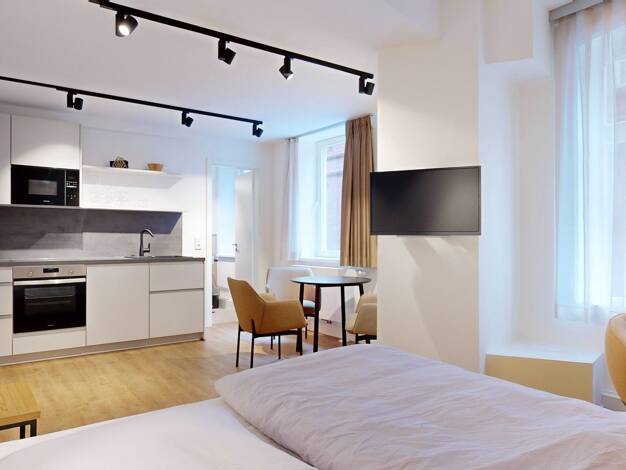 ++ HERZLICH WILLKOMMEN IM APARTMENT STADTOASE ++ Das sanierte 2-Zimmer Apartment kombiniert Komfort mit hochwertiger, moderner Inneneinrichtung, ideal für Ferien oder Business-Zwecke, ob für 3 Monate...