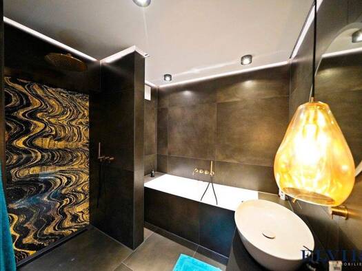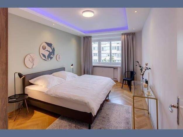 Weitere Informationen, viele hochauflösende Fotos und ein Video zu diesem Objekt finden Sie unter: https://www.mrlodge.de/wohnungen/detailansicht/10866/ See offer in English: https://www.mrlodge.com/search/detailed-view/10866/ * Repräsentatives Eingangsportal und Entrée mit italienischem Naturstein * Designerlampen * Hochwertige Lederdesignmöbel * Großer Balkon im Hinterhof * Zwei 4K Flachbildfernseher * Schallschutzfenster mit Dreifachverglasung Zimmer: Wohn- / Esszimmer mit Ledersitzgruppe, S...