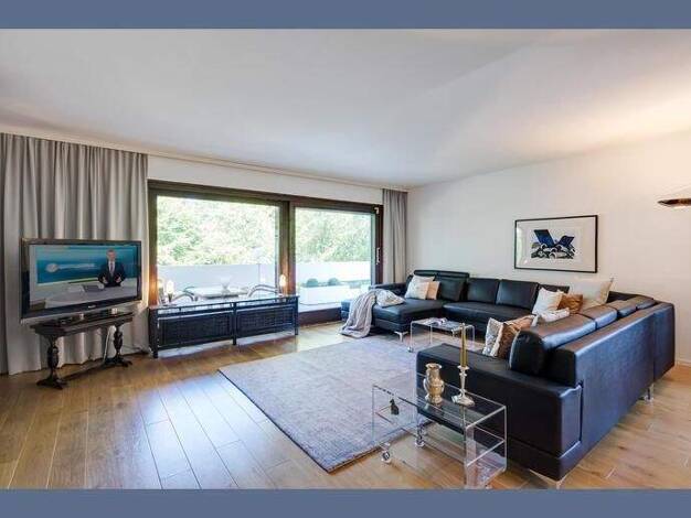 Hochwertig möblierte 3 Zimmer Wohnung in München-Bogenhausen. Geschmackvolle Möblierung aus einer Mischung von Antiquitäten und Designer Möbeln. Großzügiges Wohnzimmer mit Ecksofa und Esstisch für 4 ...